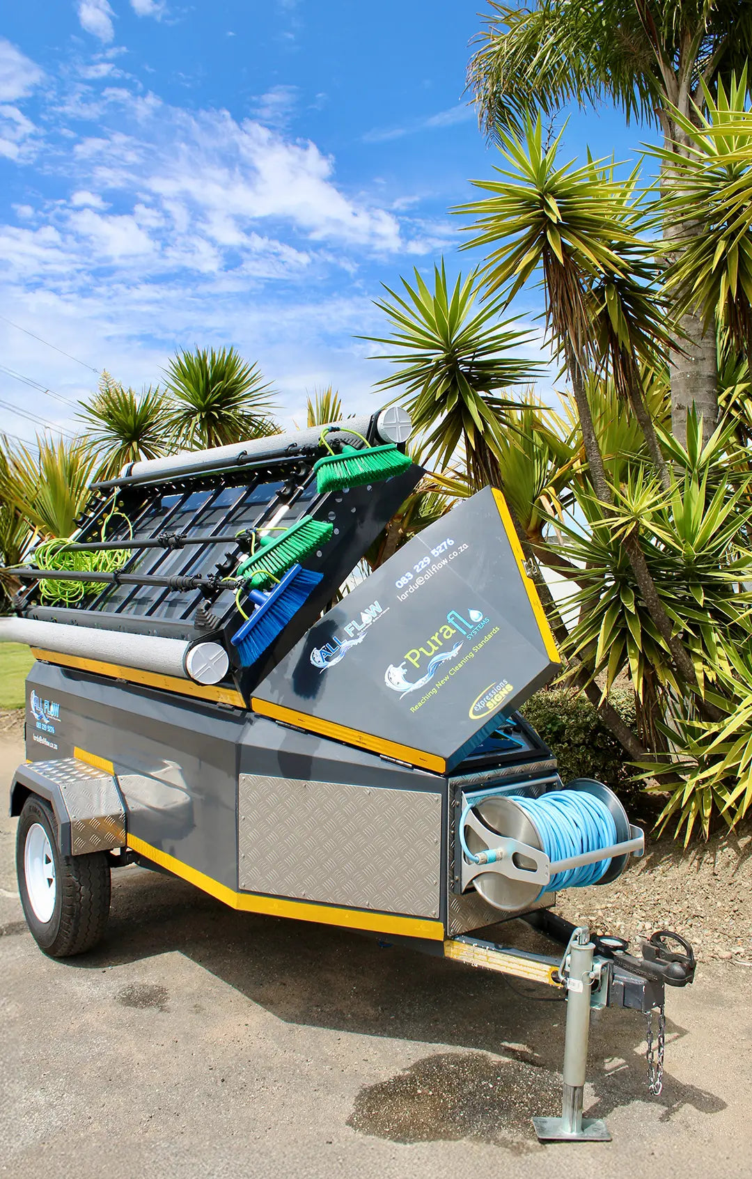 We are using a Pura Flow System trailer unit, and we love it. High reaching windows are a problem of the past and even difficult to reach solar panels. The after-sale service is great. Thank you, Pura Flow Systems, for supporting and supplying us with what we need to get the job done.